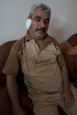 The Israeli army brutally attacked this 48-year-old resident of Asira right next to his home, stole 500 shekels (£100, US $250) from his pocket and then prevented the ambulance from treating him (photo by IWPS).