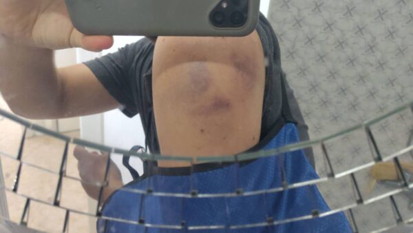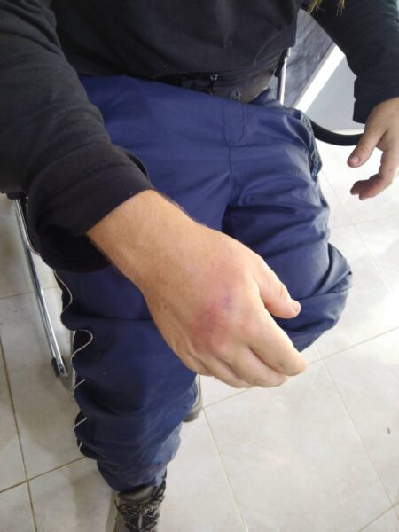 Umm Saleh was taken to Istishari Hospital in Ramallah and diagnosed with intracranial haemorrhage after suffering two baton blows to the head. She also suffered more minor injuries from blows to her back. The Swedish activist was hit on his head, requiring stitches, and also has a crack on his humerus and swelling on his body. The Italian activist was left with mild injuries to his head.