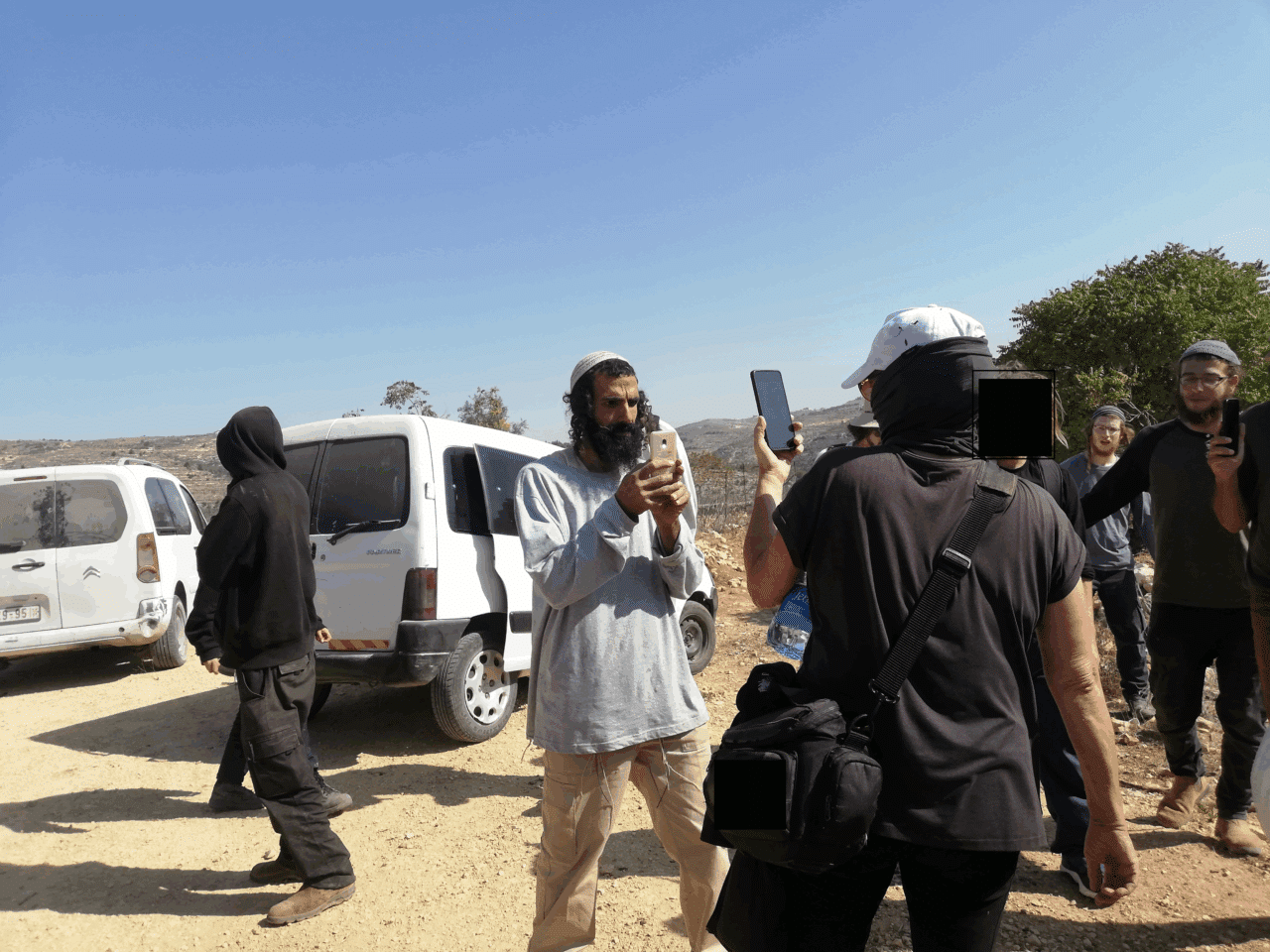 A group of settlers arrived. They began yelling orders that we must move on, forcing us to stop harvesting as they funneled us out of the grove. As we prepared to begin filling the farmers’ vehicles, the settlers started blocking the road, seemingly in an attempt to buy time for the arrival of armed soldiers.