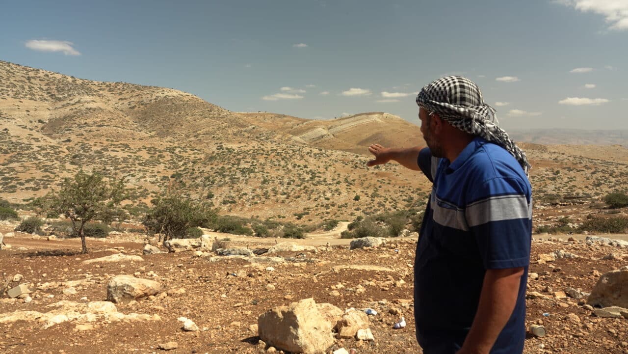 We interviewed a father and son in Al Aqaba who have been threatened and attacked by a new illegal settler outpost since February 2025. Initially the outpost was manned by one settler who would attack the family’s animals; killing 15 sheep and 5 dogs this year. The outpost now has 10 prefabricated houses and around 3 families living there, and it is placed in such a way that the family cannot graze their sheep on the land, or access the road eastwards. This means that the family have to buy feed for their sheep rather than the sheep getting their food from natural grazing, which is a considerable cost.