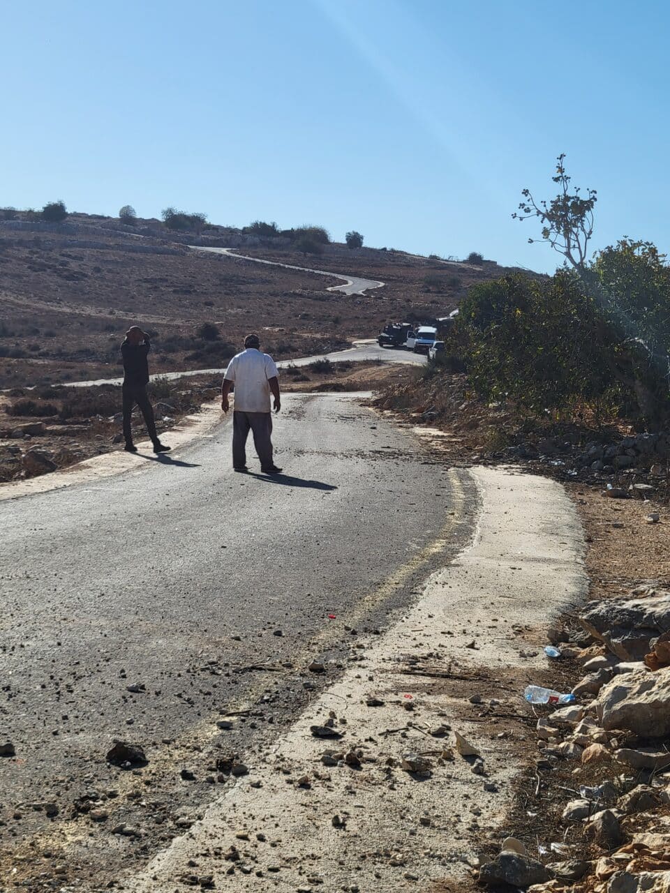 Israelis harassed harvesters in the Jabl a-Tal area, south of the village. Soldiers who later arrived on location announced that land owners have only two and a half hours to harvest and would then need to leave. In recent months there have been repeated attempts to establish a new outpost there.