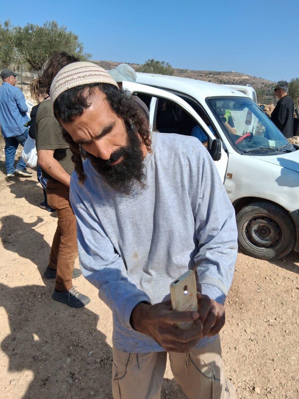 An armed Israeli coloniser joined by soldiers drove away Palestinian farmers and solidarity activists from the land they were harvesting. After blocking the Palestinians’ vehicle from leaving the area, the army detained the farmers, two journalists, and the solidarity activists for about one hour. This resulted in the arrest of two Palestinian farmers and one journalist. All were eventually released, though the journalist sustained a broken wrist due to severe beatings by the army.