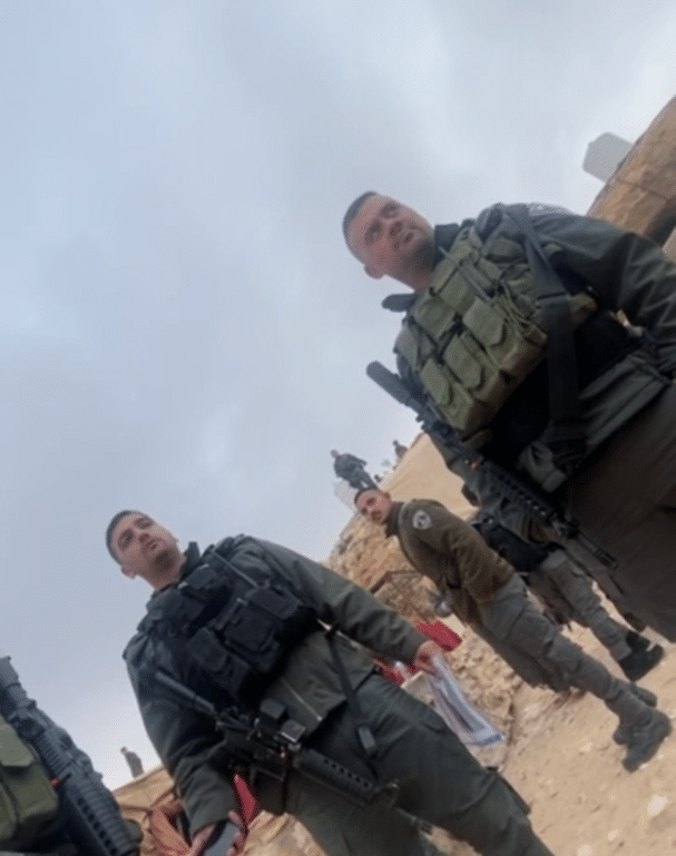 In the past week the family had been the target of ceaseless attacks by both Israeli military and settlers, often working in coordination. The attacks resulted in the injuries of the family’s matriarch, 59-year-old Fadda Abu Naim, 13-year-old Riziq Abu Naim, as well as two UK nationals, a Colombian-American and a French one. On the following day, Monday Dec 8, settlers who arrived at the area dismantled corrugated metal sheds under the protection of the military. On Wednesday, Dec 10, a military force raided the family’s property, presenting a 24 hour military zone order, and arrested a US and an Australian nationals.