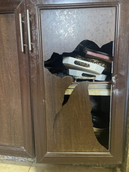 The attack lasted about 30 minutes, with the Israeli army present on site. Five soldiers stood by their jeep and watched the attack, leaving once the settlers departed. The next day, the Israeli police showed up on the property but didn’t have any interaction with the family.