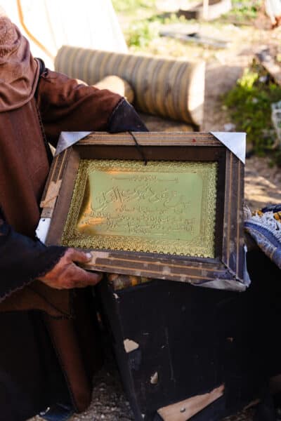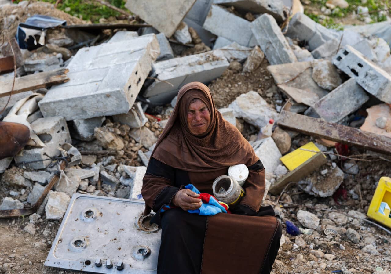 She is now living in a tiny tent next to her demolished house. There she sleeps with the few belongings she has managed to salvage from the rubble. The army destroyed everything she needs to survive, and she shared her distress about having no way to make food, nothing to protect her from the sun, no gas and no fire.